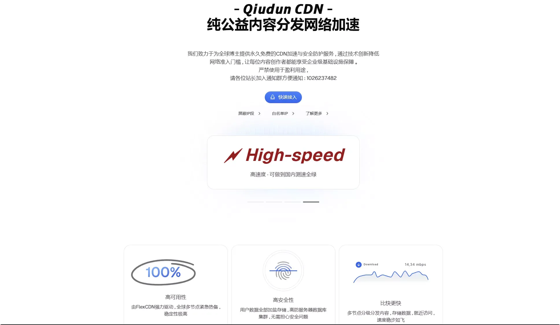 纯公益内容分发网络加速,致力于为全球博主提供永久免费的 CDN 加速与安全防护服务 , 通过技术创新降低网络准入门槛 , 让每位内容创作者都能享受企业级基础设施保障
