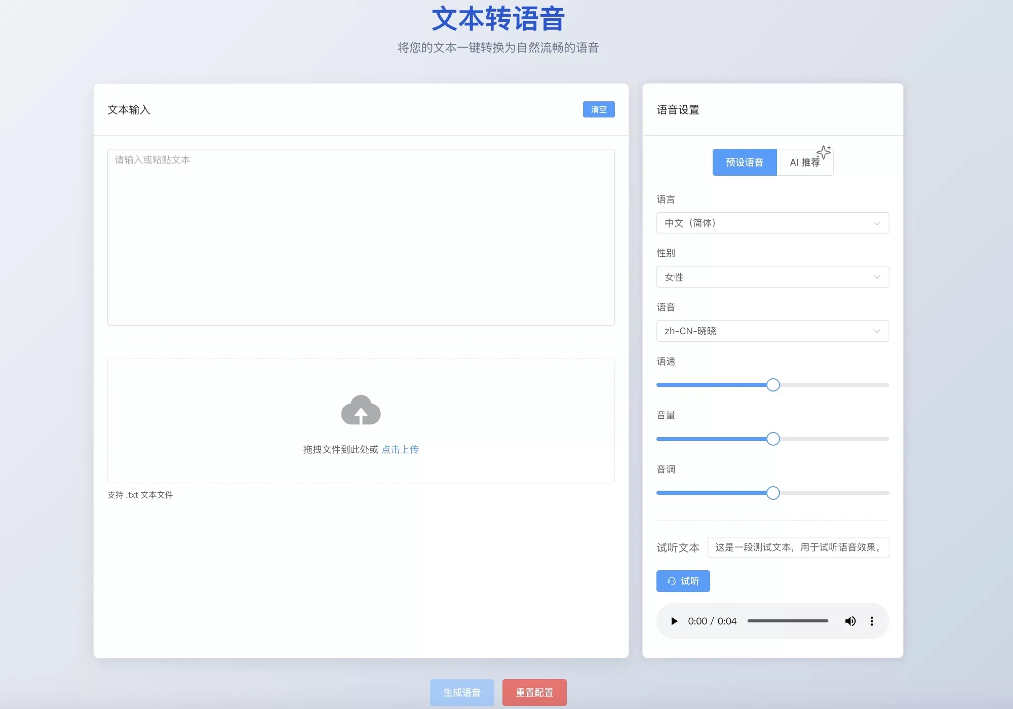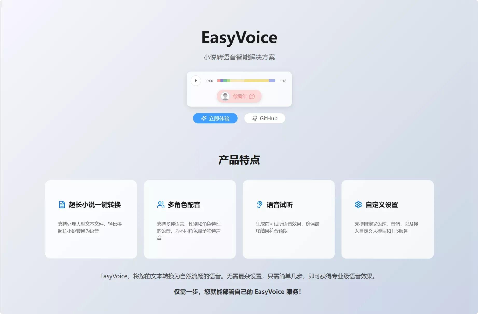 无论你是想听小说、为创作配音,还是打造个性化音频,EasyVoice 都可以帮你实现。